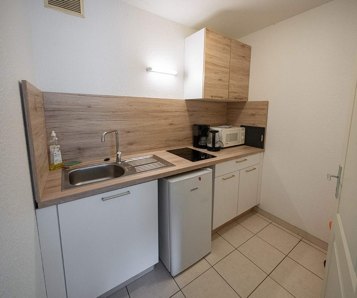 Il est possible d’ouvrir des coins kitchenette dans les chambres : supplément 20 € par nuit.